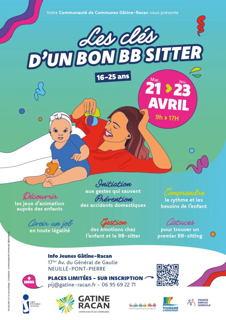 La Communauté de Communes Gâtine-Racan organise un atelier intitulé « Les clés d’un bon baby-sitter », destinée aux jeunes de 16 à 25 ans, du mardi 21 au jeudi 23 avril, de 9h à 17h, à l’Info Jeunes Gâtine-Racan à Neuillé-Pont-Pierre.
