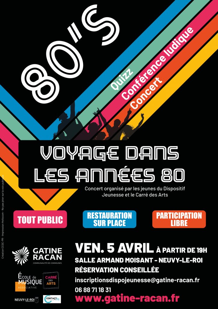 VOYAGE DANS LES ANNÉES 80 est un projet porté par le Dispositif Jeunesse de la Communauté de Communes Gâtine-Racan et de l’école de musique Le Carré des Arts de Neuillé-Pont-Pierre.