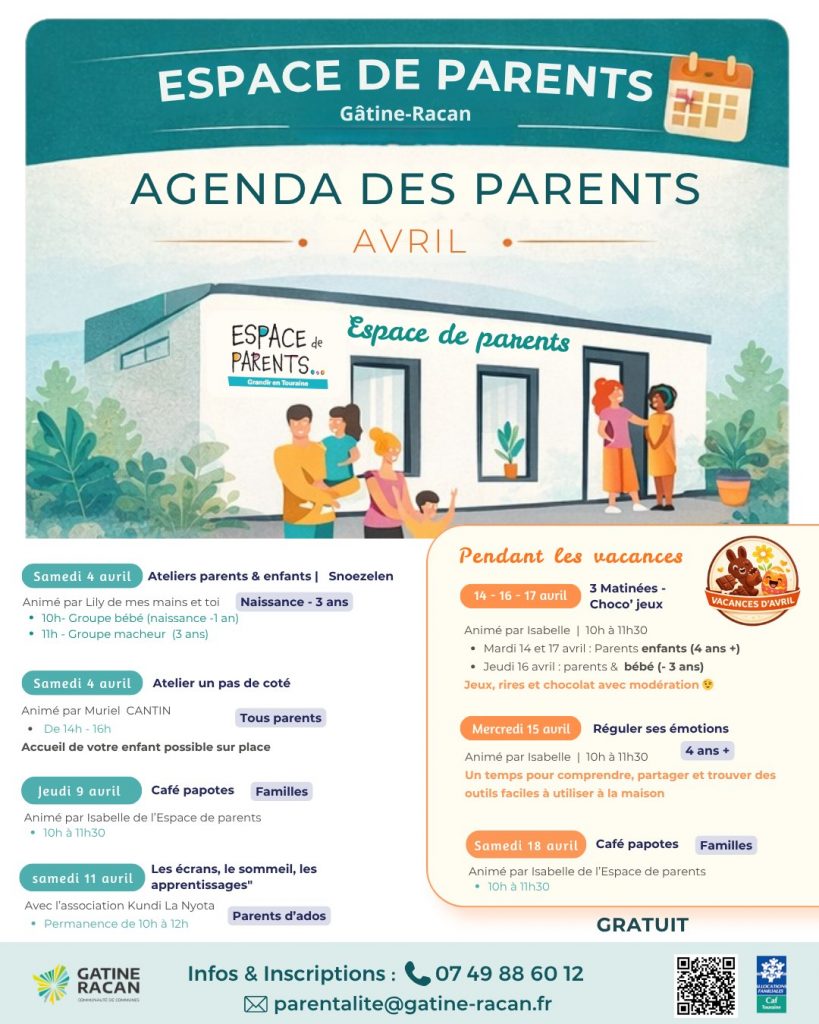 Programme du mois d’avril à l’Espace de parents